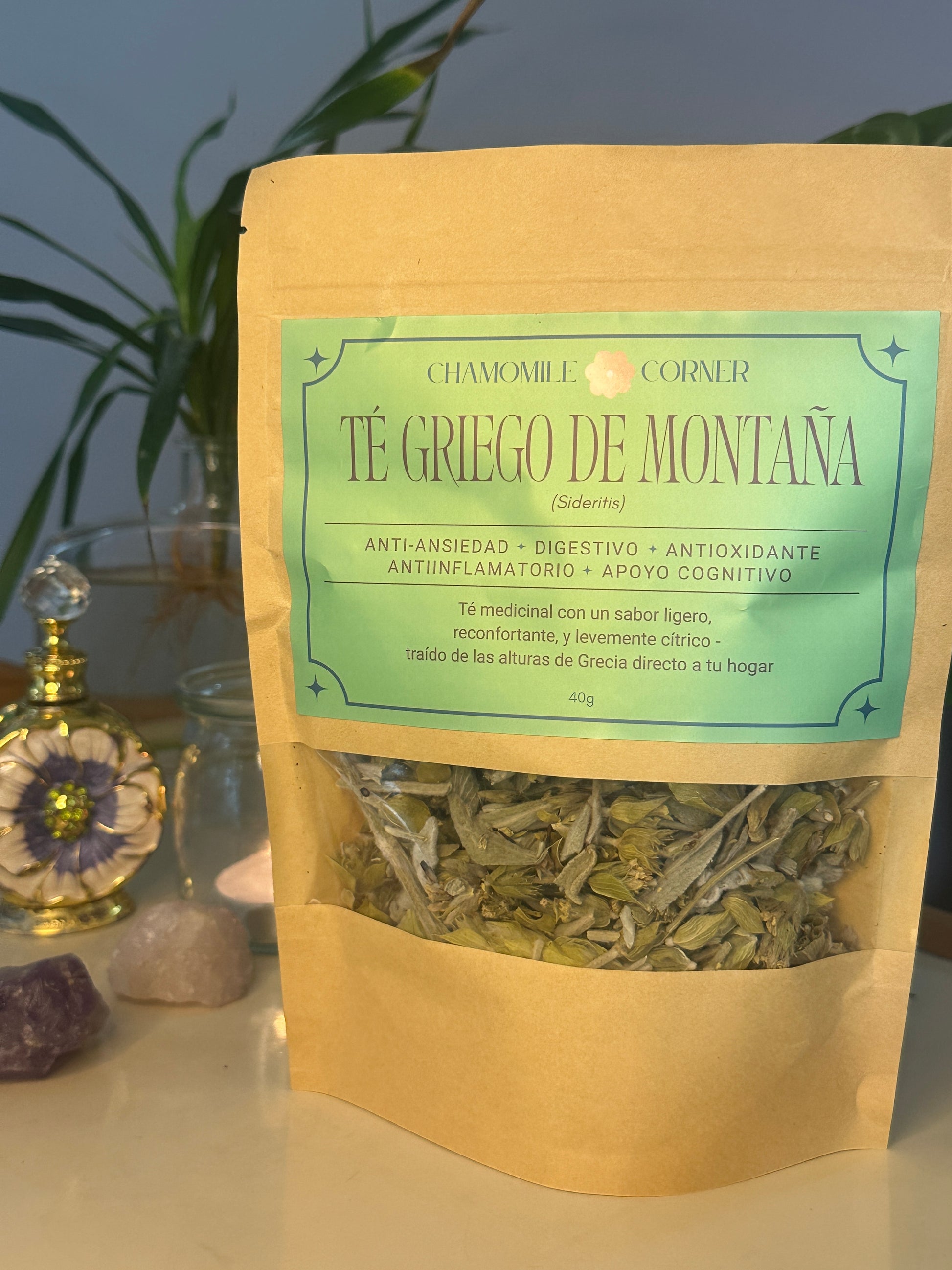 Té medicinal con un sabor ligero, herbal y ligeramente cítrico, importado directamente desde Grecia. Rico en antioxidantes, minerales y propiedades antiinflamatorias, ayuda a la salud digestiva, respiratoria y del sistema nervioso. Su nombre, Sideritis (del griego σίδερος, que significa hierro), refleja su riqueza en minerales. Conocido en Grecia como τσάι του βουνού (“tsai tou vounou/té de la montaña”), somos las únicas en Panamá en ofrecer estas hojas de té.